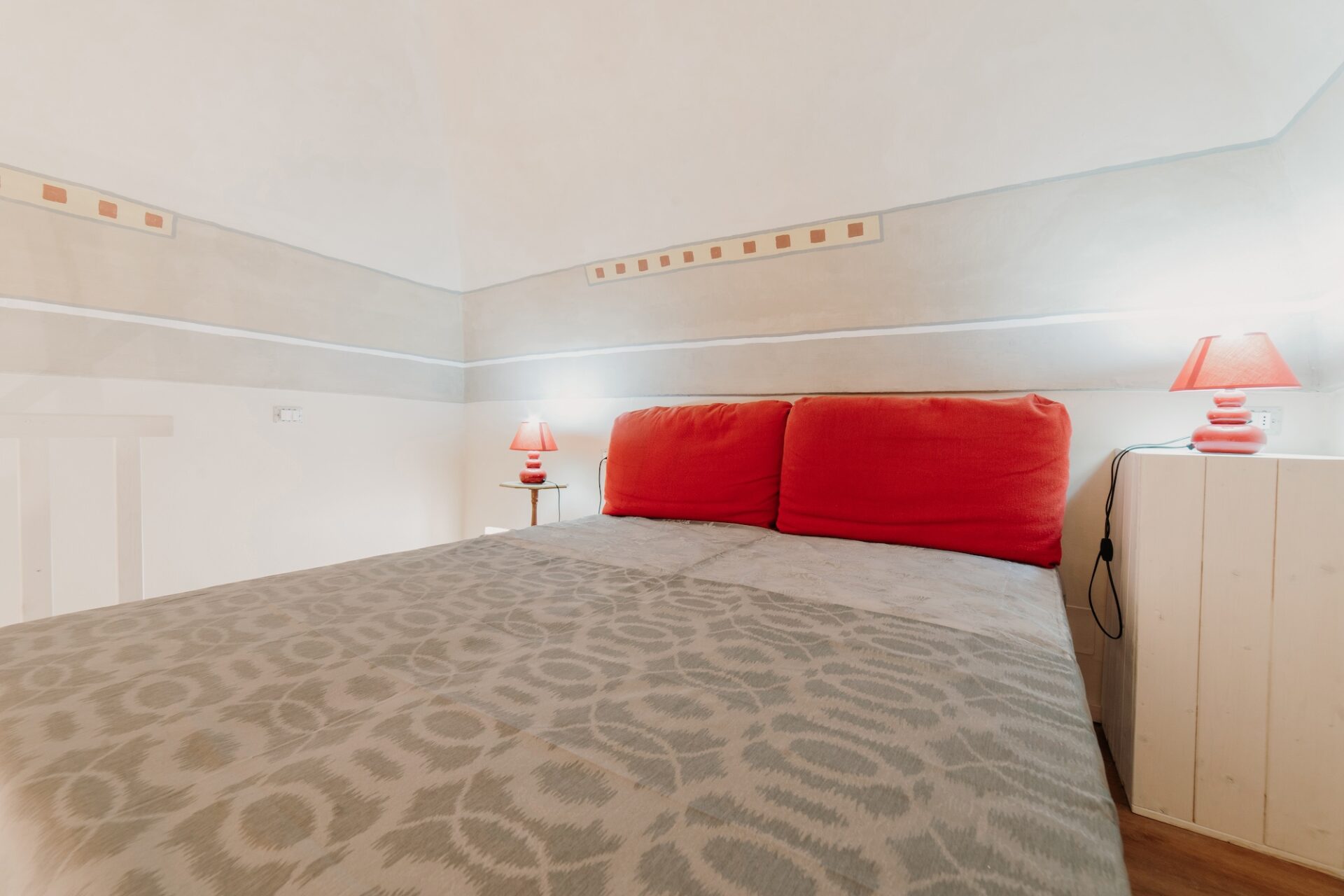 Internamente gli spazi di dimora Emilia sono cosí disposti: area living con poltrone, divani e tv per momenti di relax, soggiorno con cucina e bagno, due camere da letto di cui una matrimoniale con bagno privato ed una quadrupla con soppalco (2 letti matrimoniali).