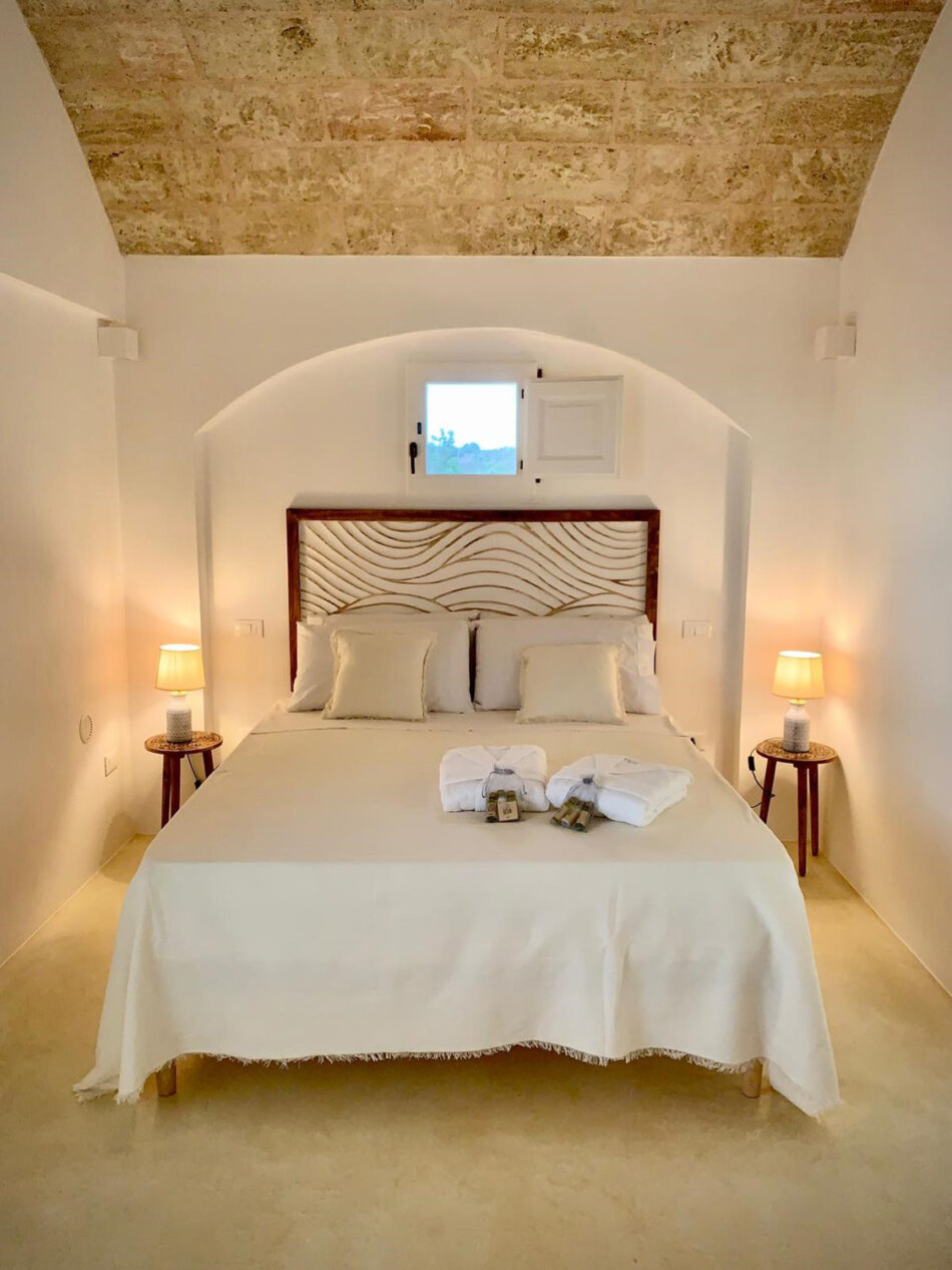 Il palazzo con volte a stella è stato restaurato conservando linee strutturali e pezzi di arredamento caratteristico delle dimore locali, combinando elementi della tradizione pugliese a design moderno e comfort. Nascono così tre suite denominate: Angelica, Camelia e Brunella.