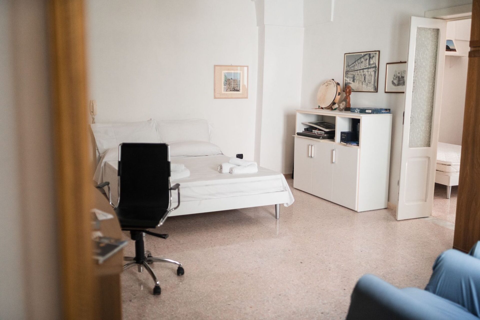 Camera tripla del B&B Marchese a Marina di Mancaversa, posizionato sul litorale ionico del Salento, a pochi passi dal lungomare e dalla spiaggia sabbiosa.