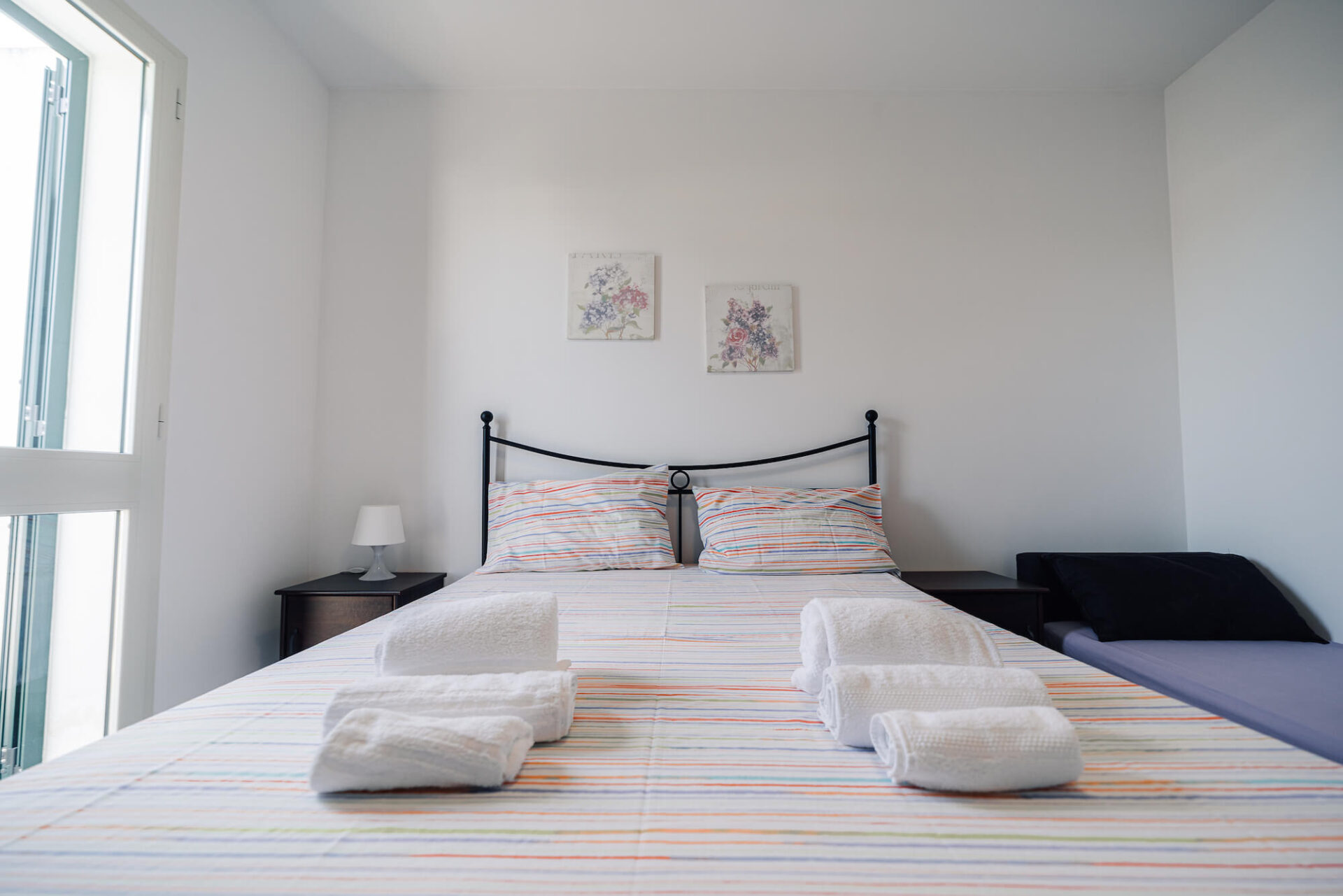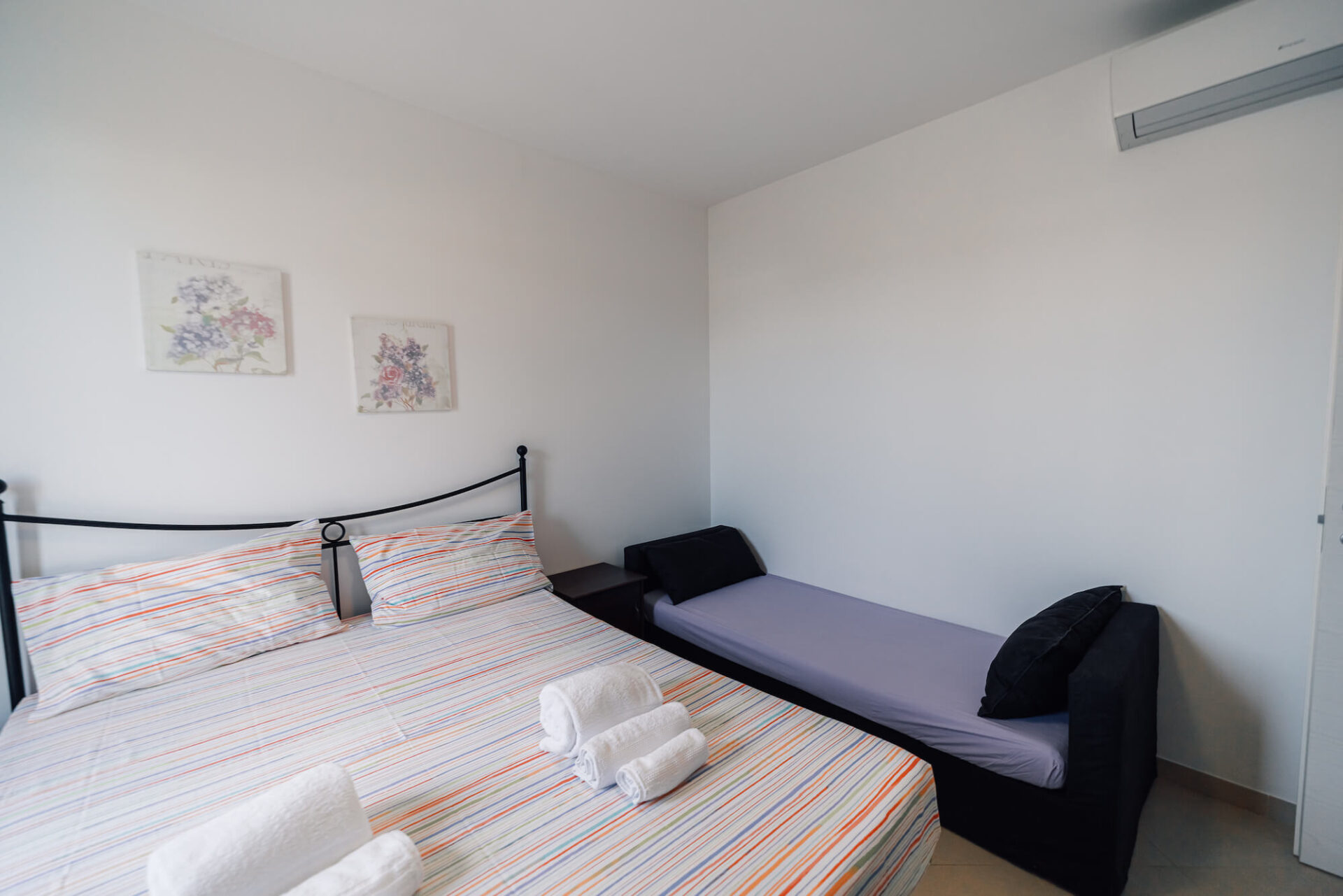 Rosmarino é un alloggio al piano terra arredato in modo semplice e lineare, completo di tutti i comfort: due camere da letto matrimoniali, bagno con doccia, soggiorno con divano con letto estraibile biposto, tv, tavolo da pranzo e angolo cottura con fornelli ad induzione, forno a microonde, macchinetta del caffé e lavastoviglie.