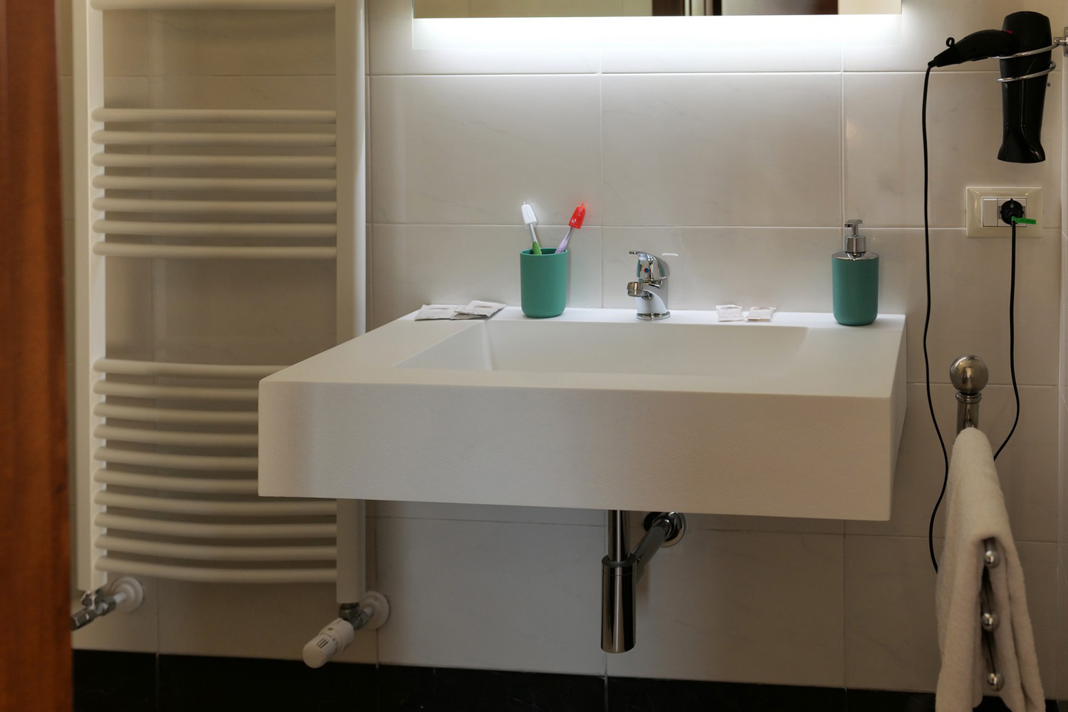 Adiacente alla camera vi è il bagno con doccia e asciugacapelli.