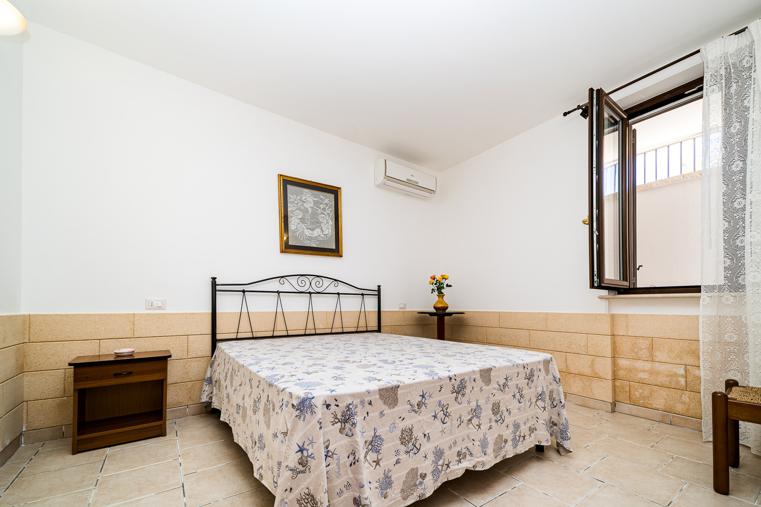 Rifinito nei dettagli, l’appartamento Scilla Basic, si colloca al piano seminterrato, sito in località Torre Suda, a circa 200 metri dal mare di bassa scogliera e a poca distanza dalle famose spiagge di Gallipoli e Torre San Giovanni.