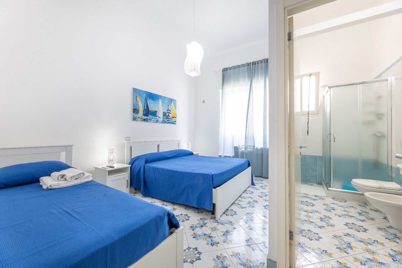 Servizi: aria condizionata, minifrigo, scrivania, asciugacapelli, armadio, sala comune per il ristoro, terrazza vista mare in comune con gli altri ospiti.