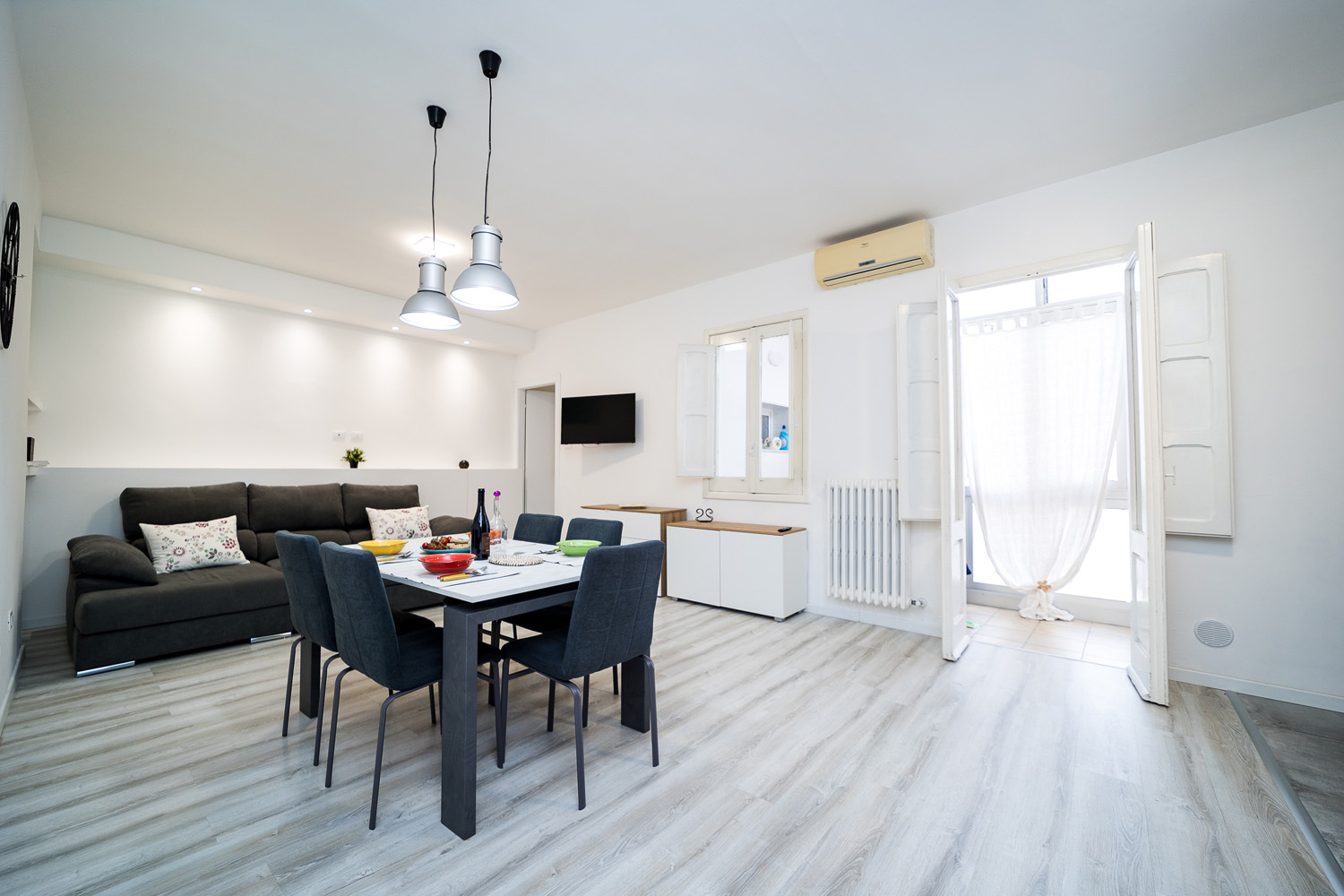 - Soggiorno open space con area living e comodo divano letto;