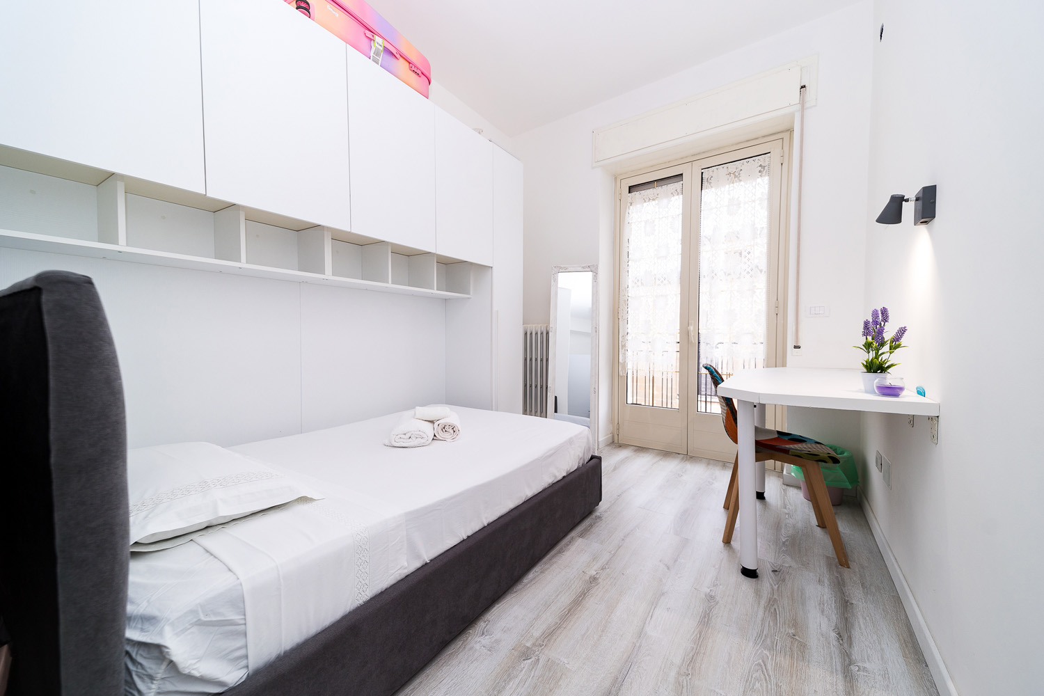 L’appartamento si colloca in quartiere residenziale e tranquillo, al terzo piano di un palazzo condominiale.