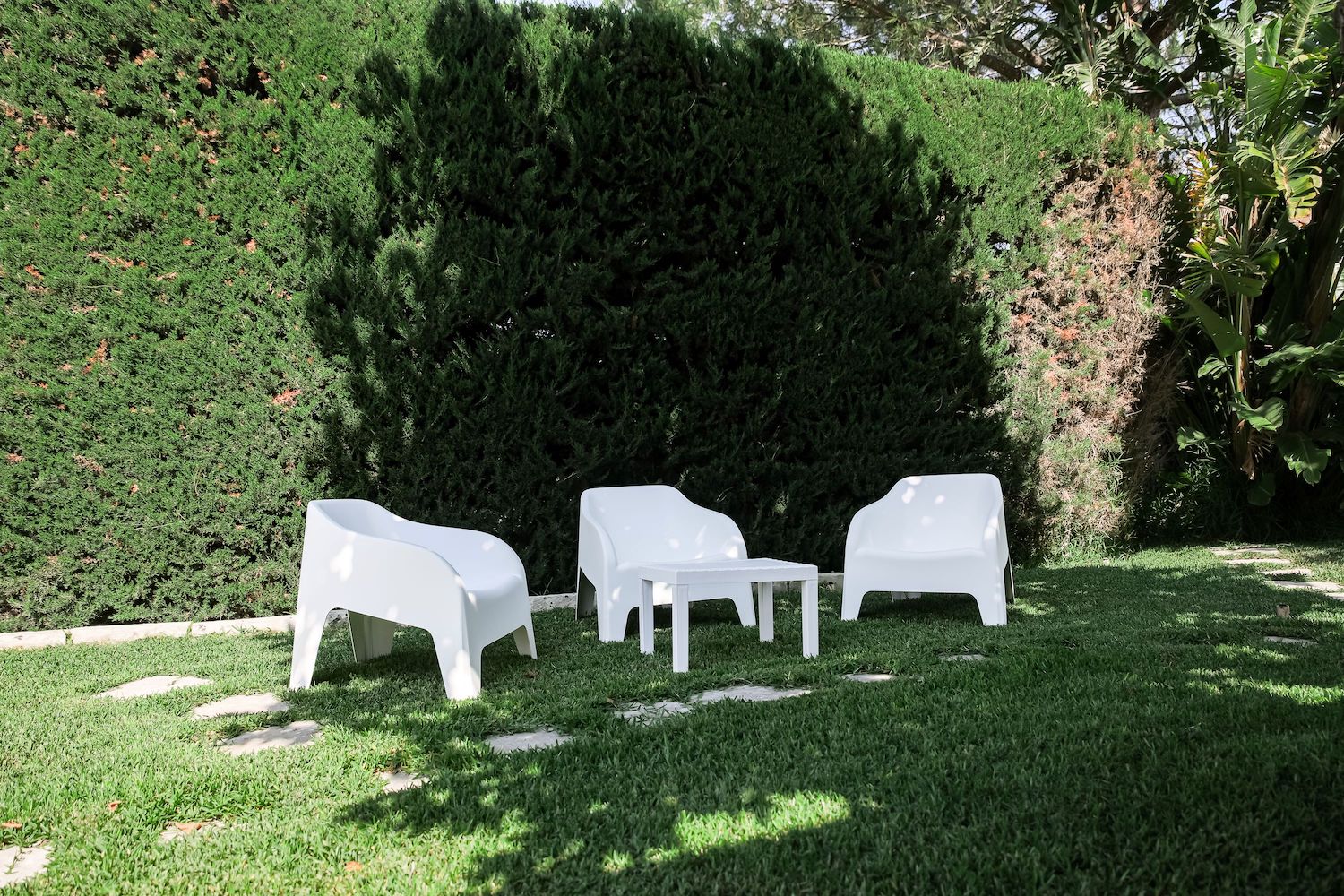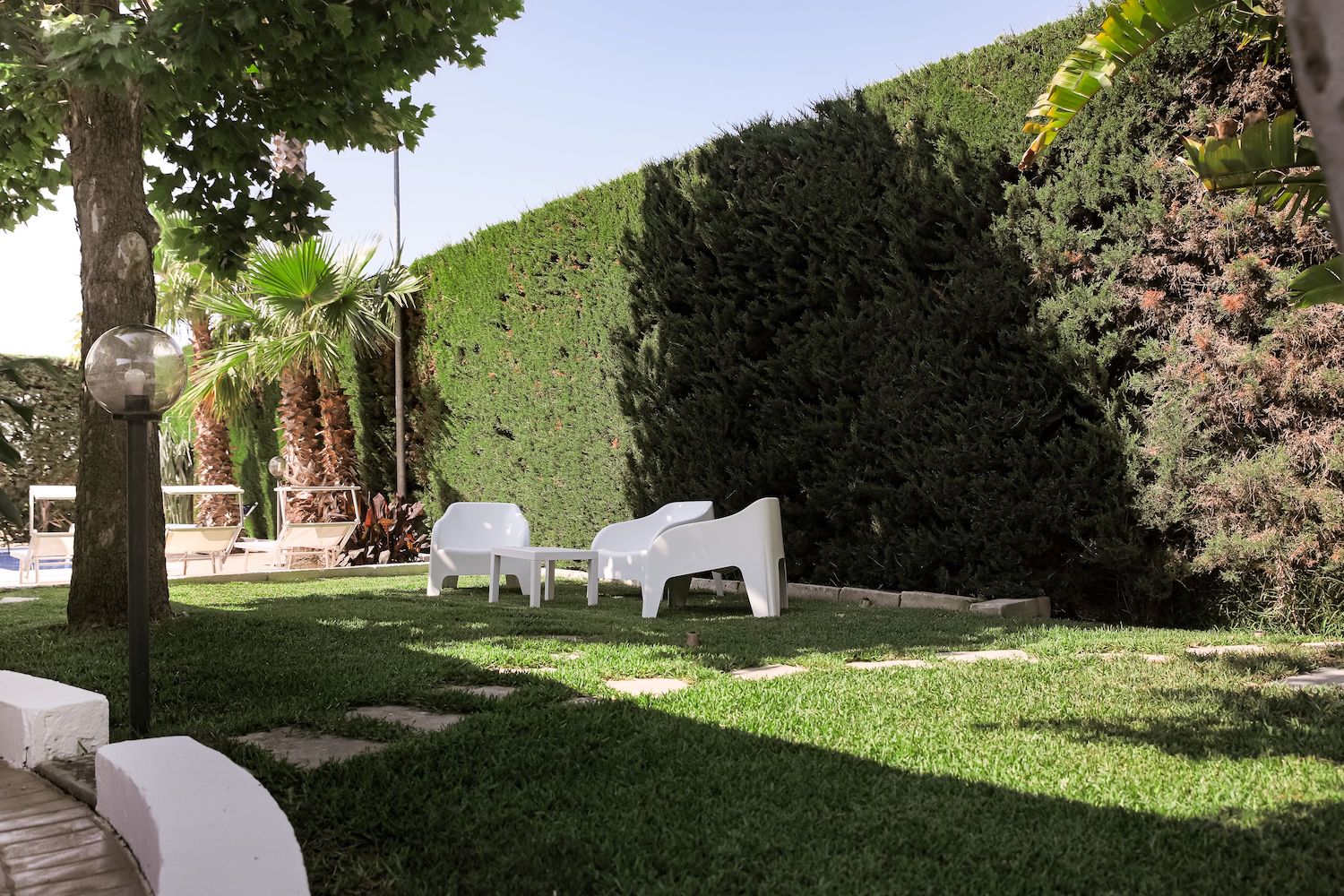 Si accede al giardino attraverso un viale interno che permette di parcheggiare comodamente le auto.