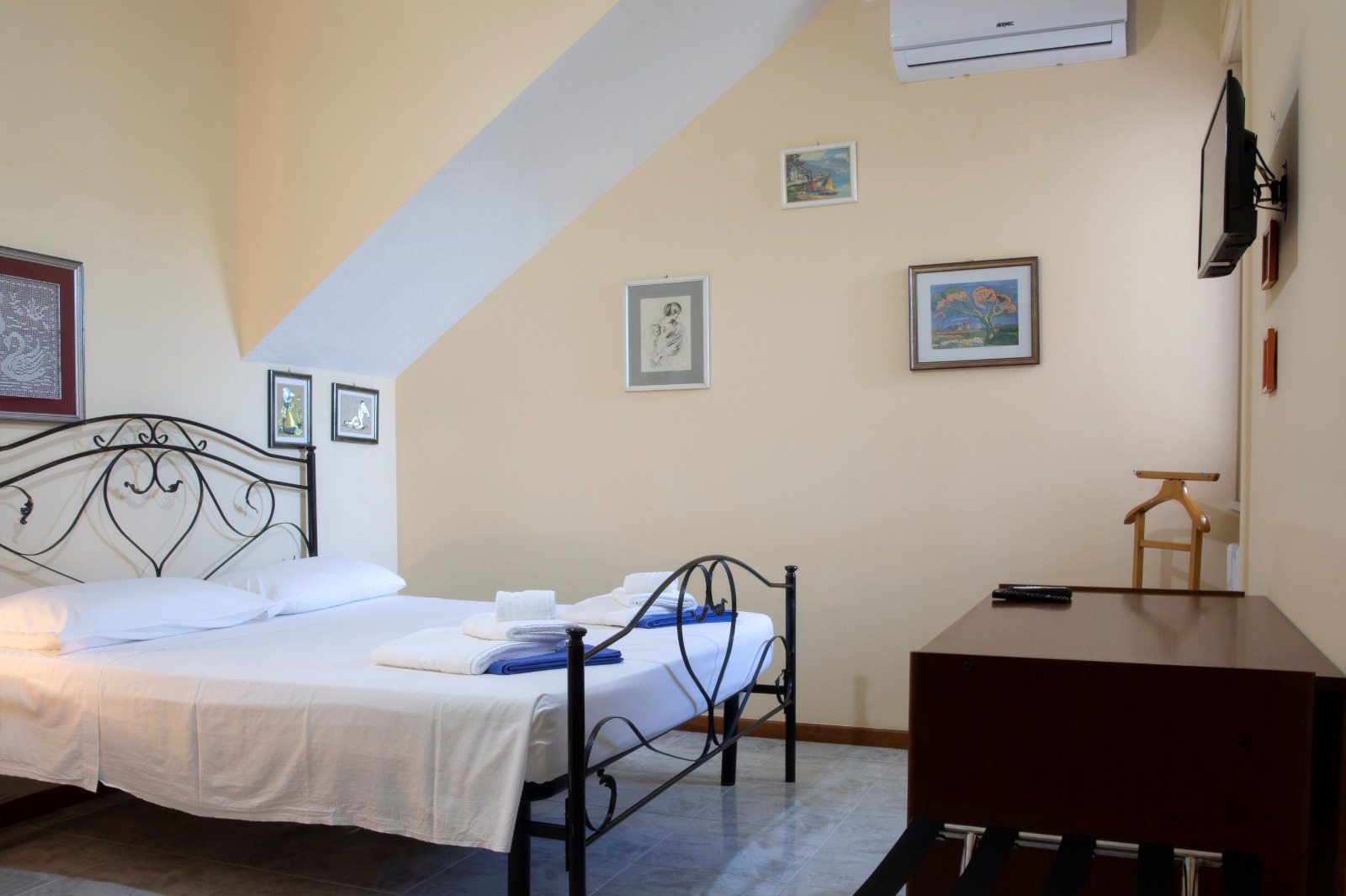 Ogni stanza è climatizzata ed è dotata di tv, zanzariera, avvolgibile elettrica e reggi-valigia.