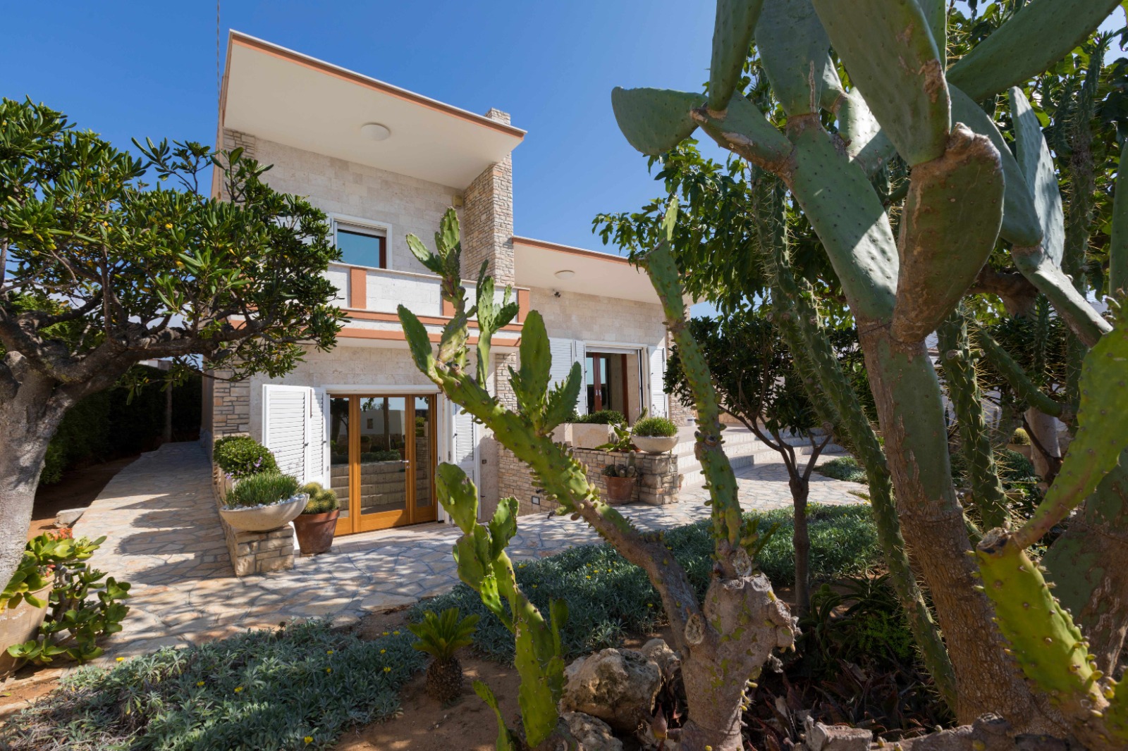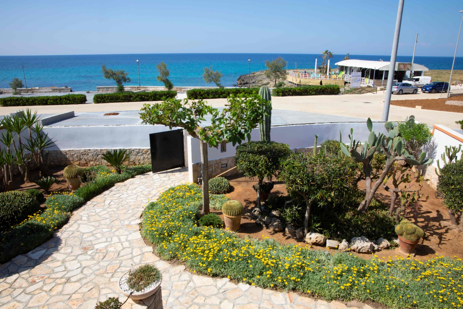 La villa è punto mediano della passeggiata ciclo-pedonale lunga oltre 10 km (più di 4 km verso Sud e oltre 6 km a Nord); così come si trova a metà strada dalle spiagge di sabbia allocate a Nord (a 8/10 km da Lido Pizzo, Lido Punta della Suina, Lido Zen, Baia Verde, Lido San Giovanni a Gallipoli) e a Sud (medesima distanza per Lido Pazze, per i numerosi lidi della marina di Ugento (Lido Coco Loco, Lido Sabbioso, Lido Bora Bora, etc.), per quelli di Lido Marini (Playa Blanca, Lido Nereide, Costa del Salento beach) e della marina di Pescoluse (Maldive del Salento, Le Cinque Vele).